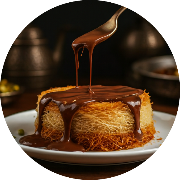 Delicate layers of crisp filo pastry filled with finely ground nuts, baked until golden and finished with light aromatic syrup, offering a refined harmony of texture and sweetness.