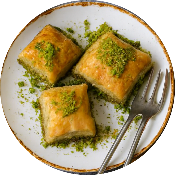 A warm Middle Eastern delicacy of crisp, golden shredded pastry layered with soft, molten cheese, gently baked and finished with fragrant sugar syrup for a perfectly balanced sweetness.