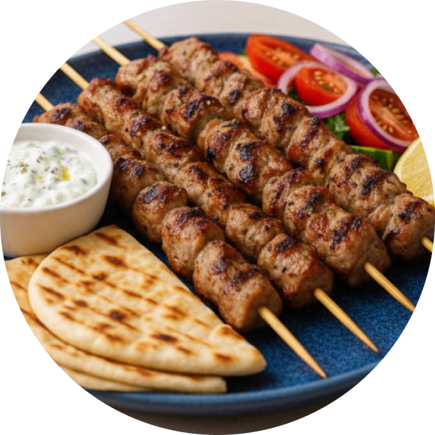 Finely minced lamb combined with red peppers and aromatic spices, hand-pressed onto skewers and grilled over charcoal, offering intense flavour, tenderness and a beautifully spiced finish.