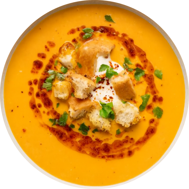 A traditional, slow-cooked soup of red lentils simmered with onion, garlic and gentle spices, blended to a smooth consistency and finished with olive oil for warmth, depth and comfort.