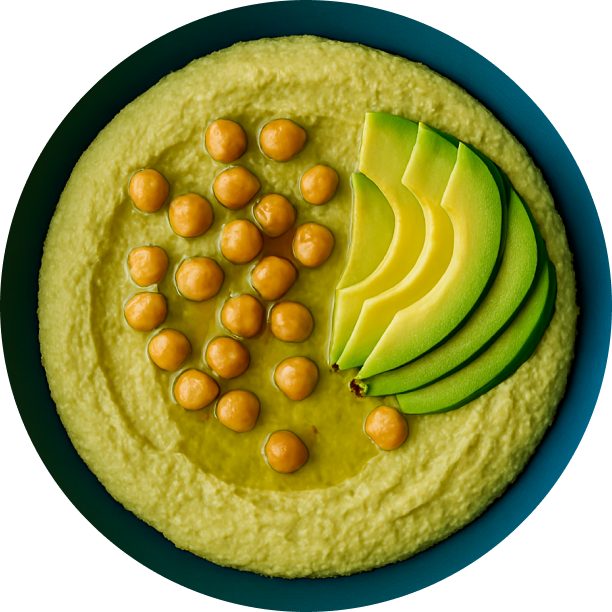 A contemporary expression of hummus, where chickpeas are finely blended with ripe avocado, tahini, lemon and garlic, resulting in a buttery, vibrant purée finished with extra virgin olive oil for a fresh, elegant taste.